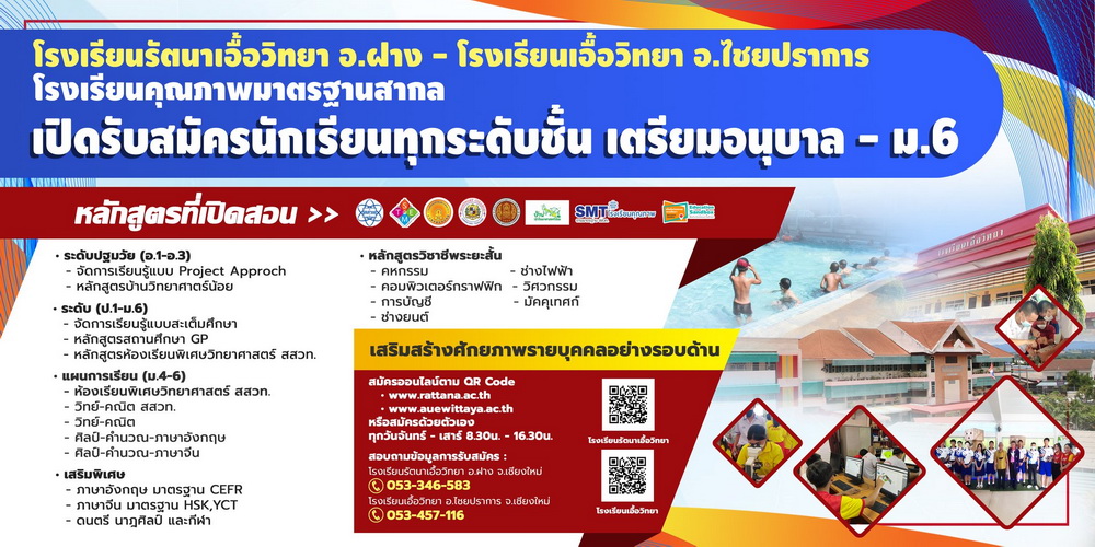 ยินดีต้อนรับสู่รั้วแห่งการเรียนรู้ โรงเรียนรัตนาเอื้อวิทยา Welcome to Rattana Auewittaya School – A Place of Knowledge & Inspiration 拉达娜新知学校 热烈欢迎您的到来 ที่นี่...เราสร้างสรรค์ อนาคตที่สดใส ด้วยการศึกษาและคุณธรรม
